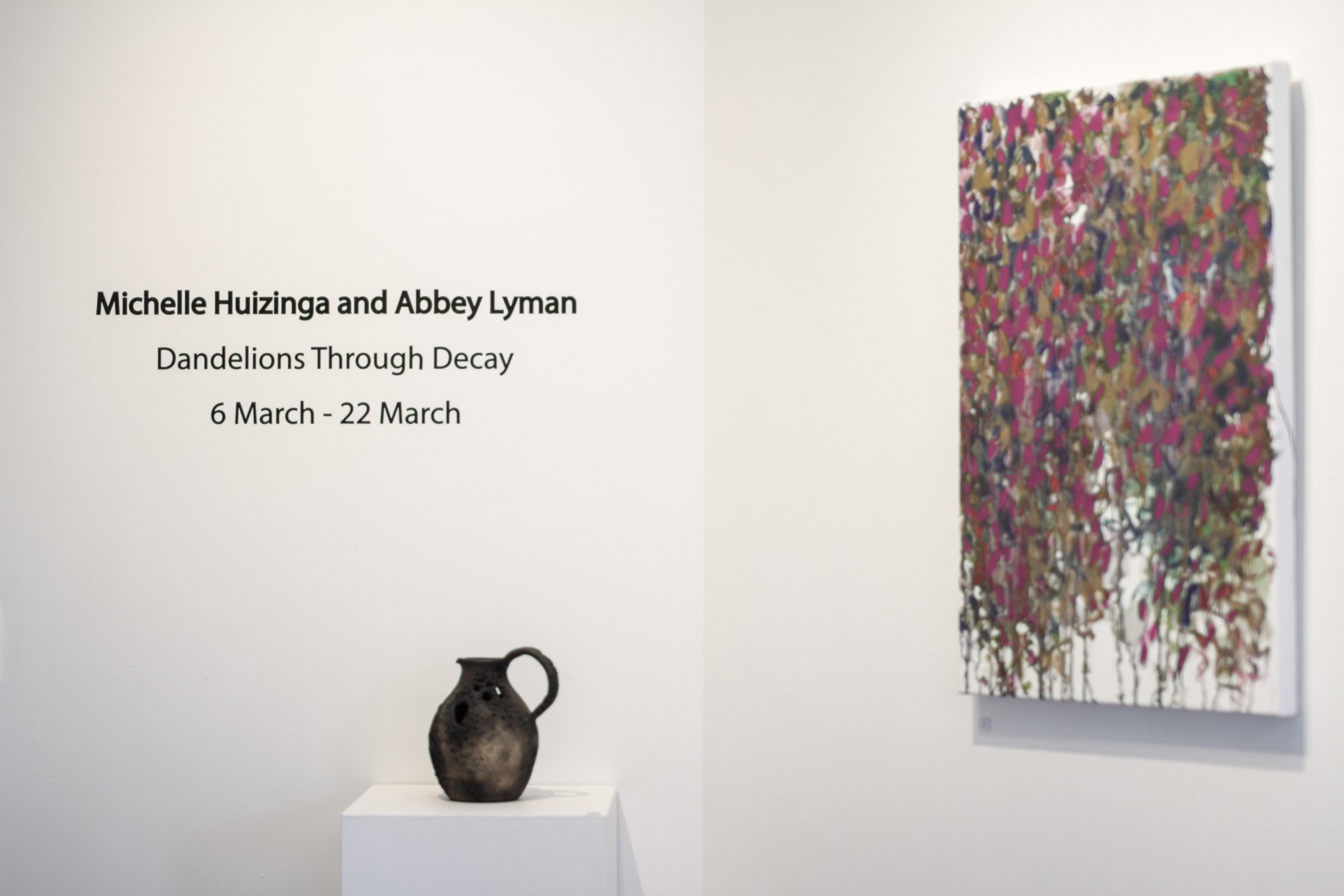Dandelions Through Decay brings together the practices of Michelle Huizinga and Abbey Lyman, exploring how moments of reflection can be found in the everyday and in the small, deliberate moments that shape our experience of the world.